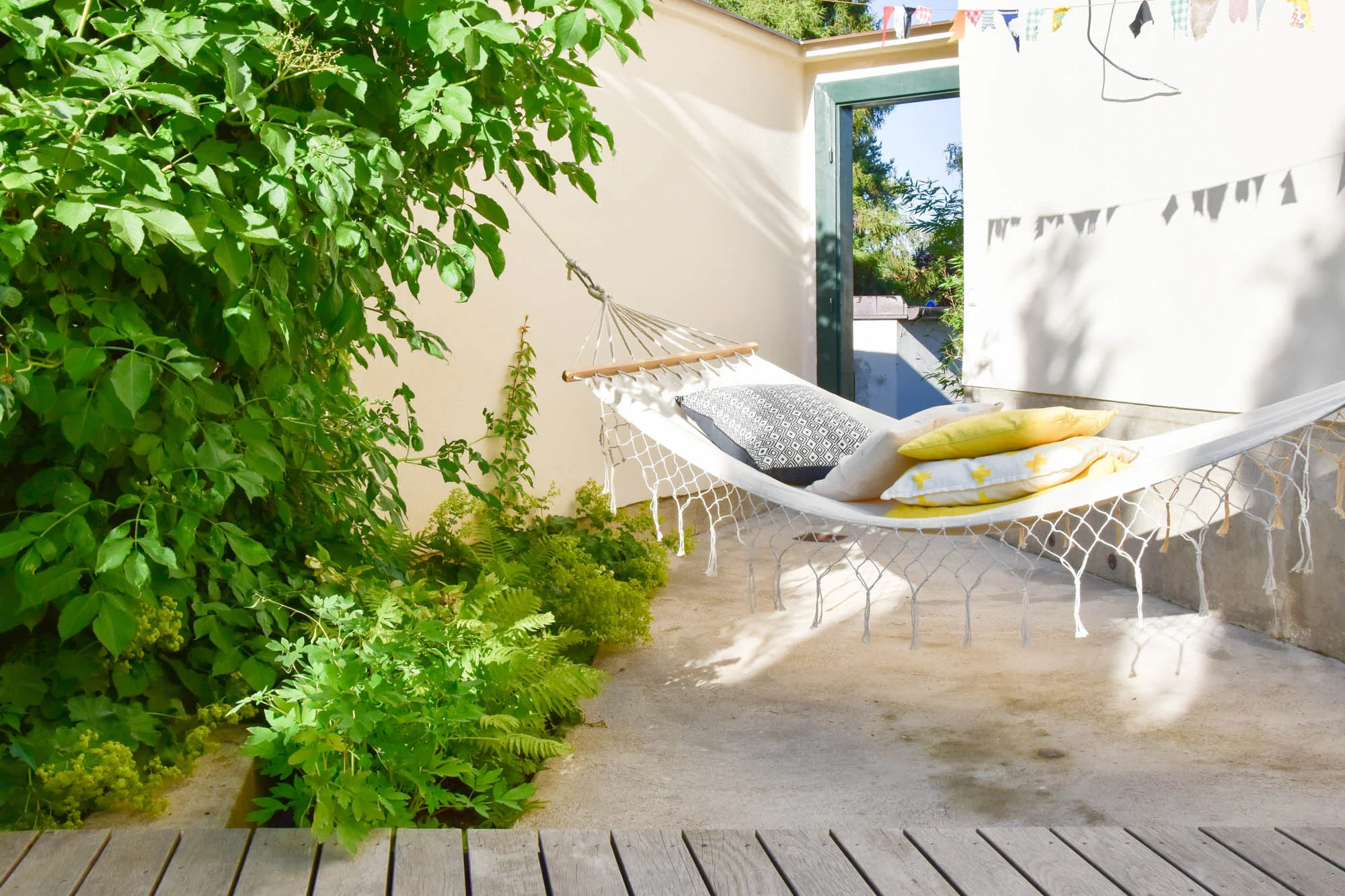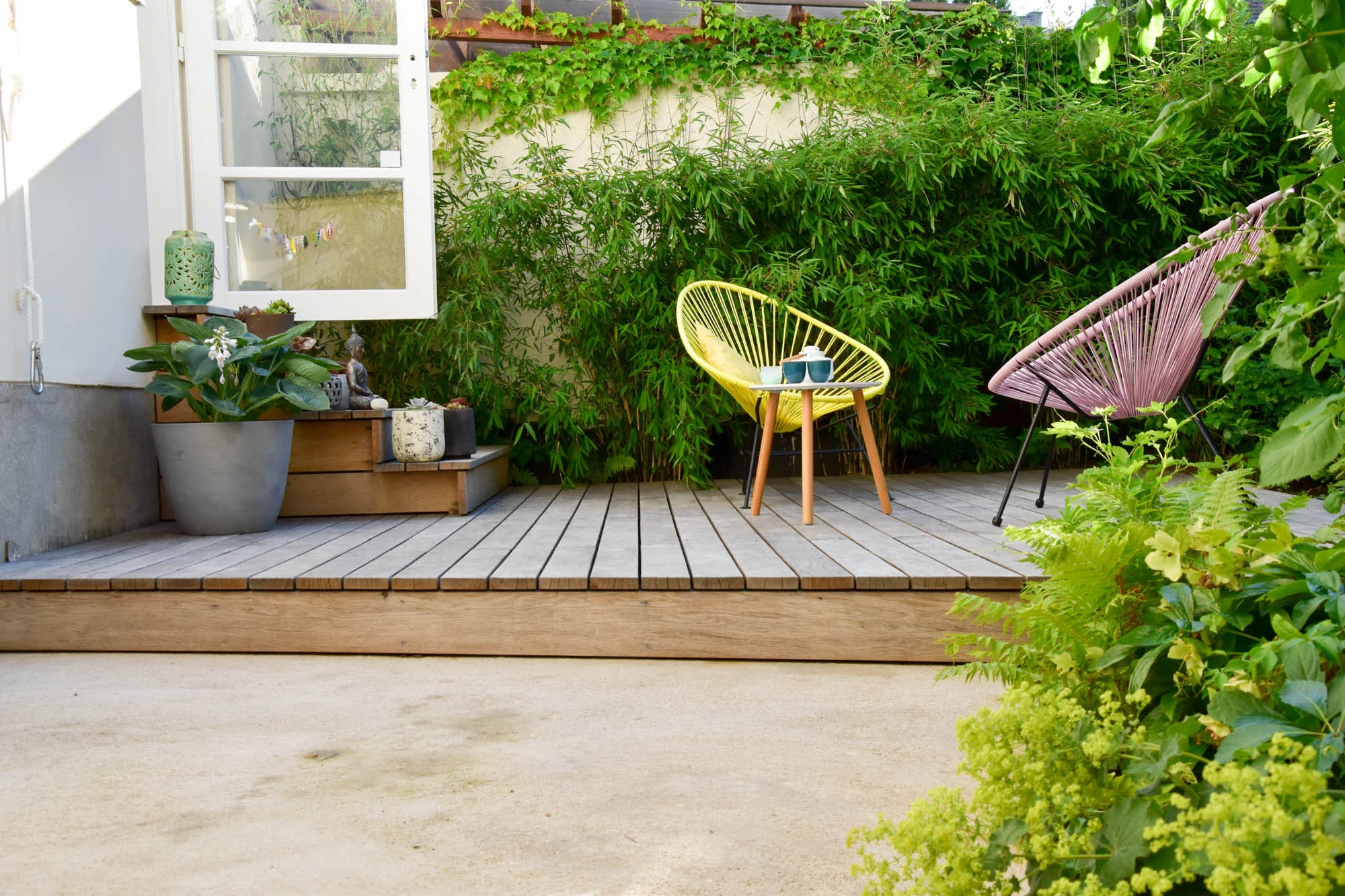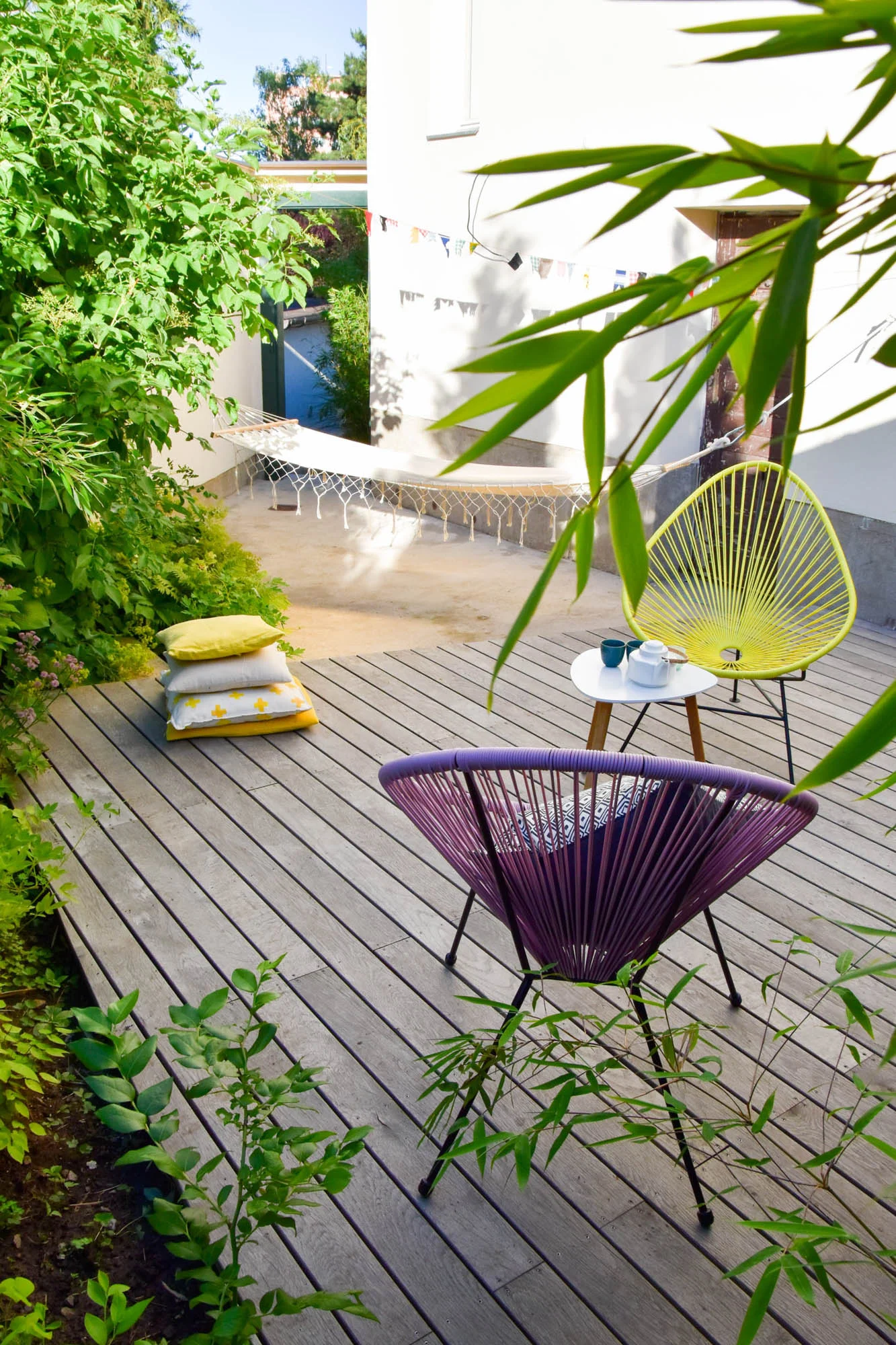 Zahrada s dvěma pokoji je pro nás dalším příkladem toho, že i ve městě, na malém pozemku, se dá krásně žít. Habrový plot jednou uzavře i přední pokoj a na zahradě bude absolutní soukromí.