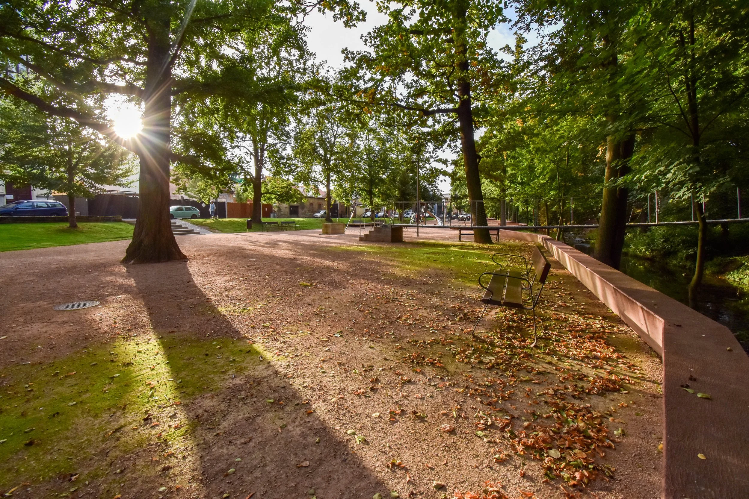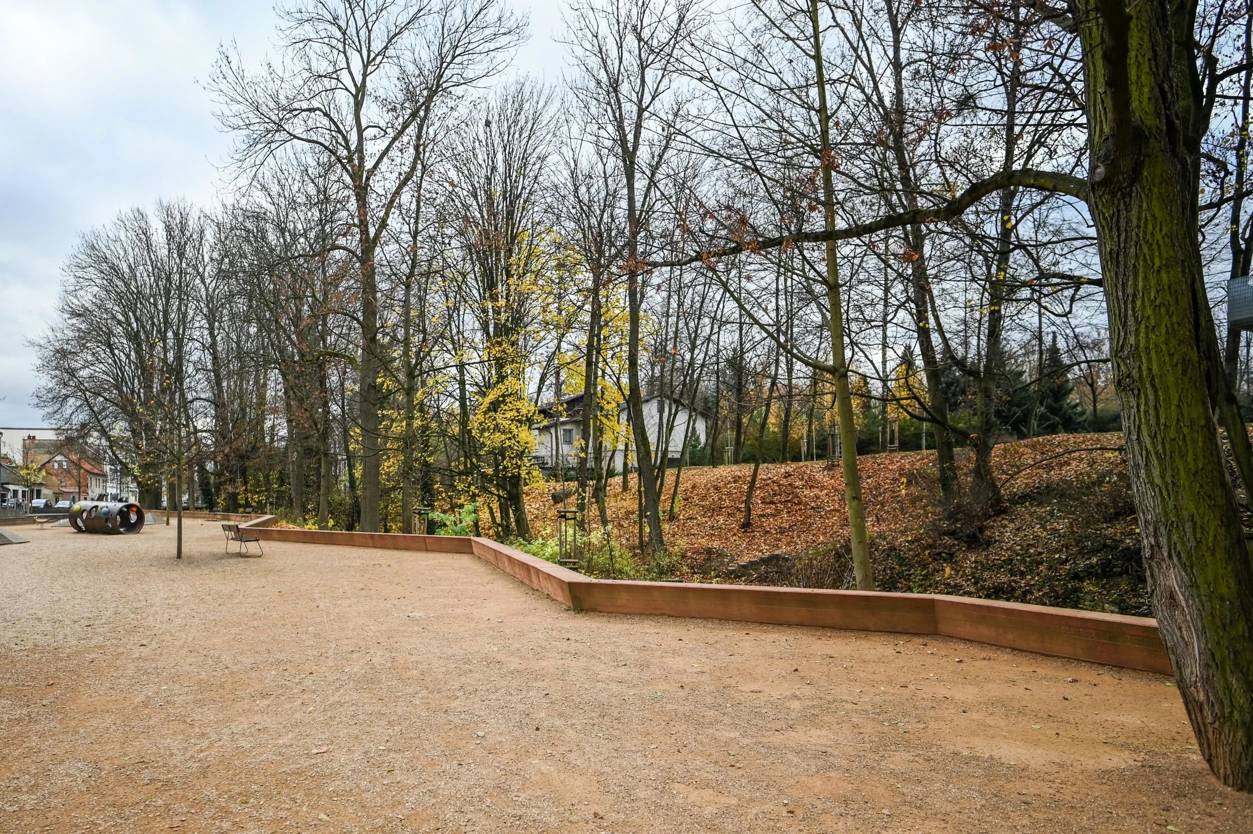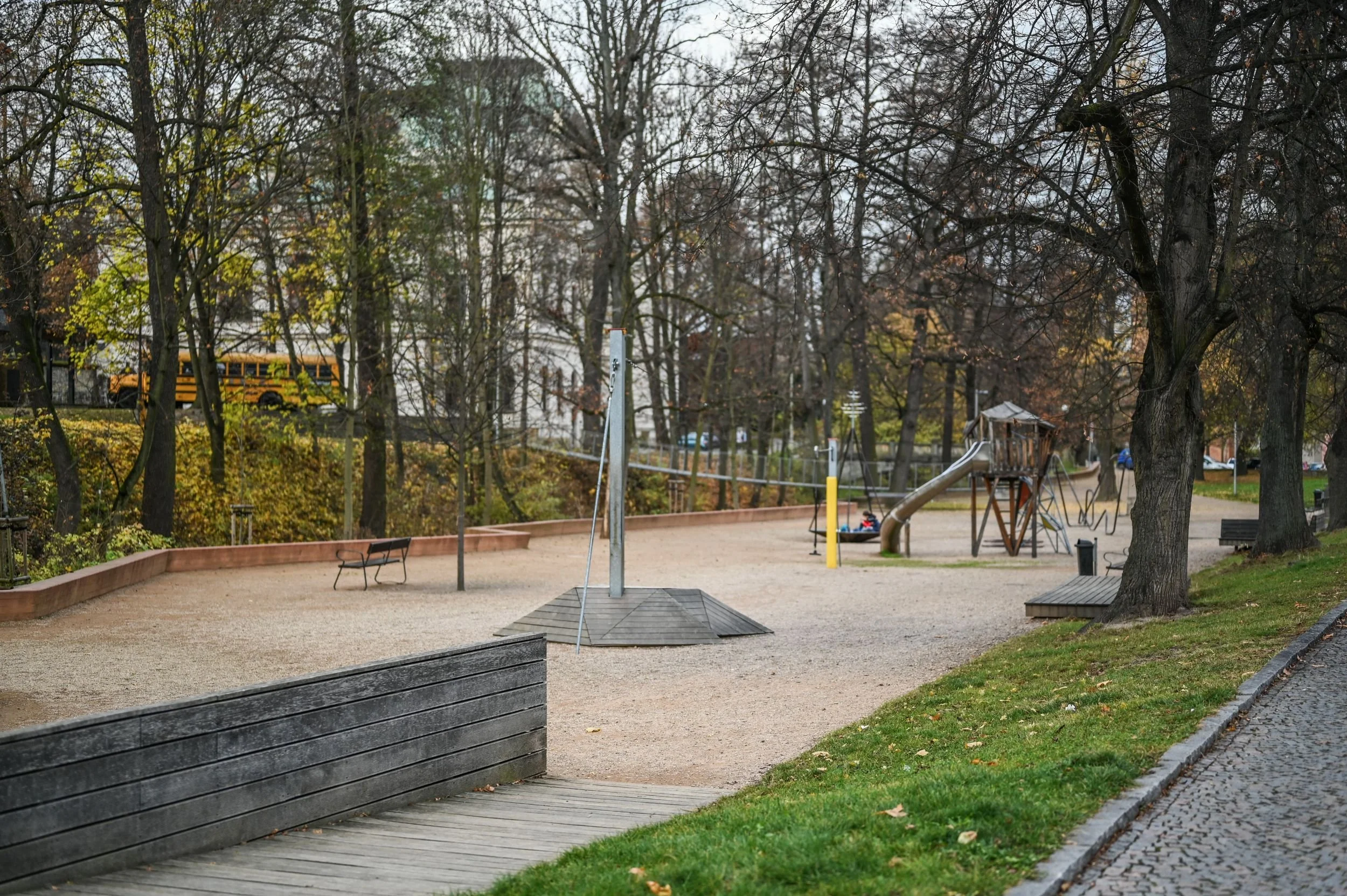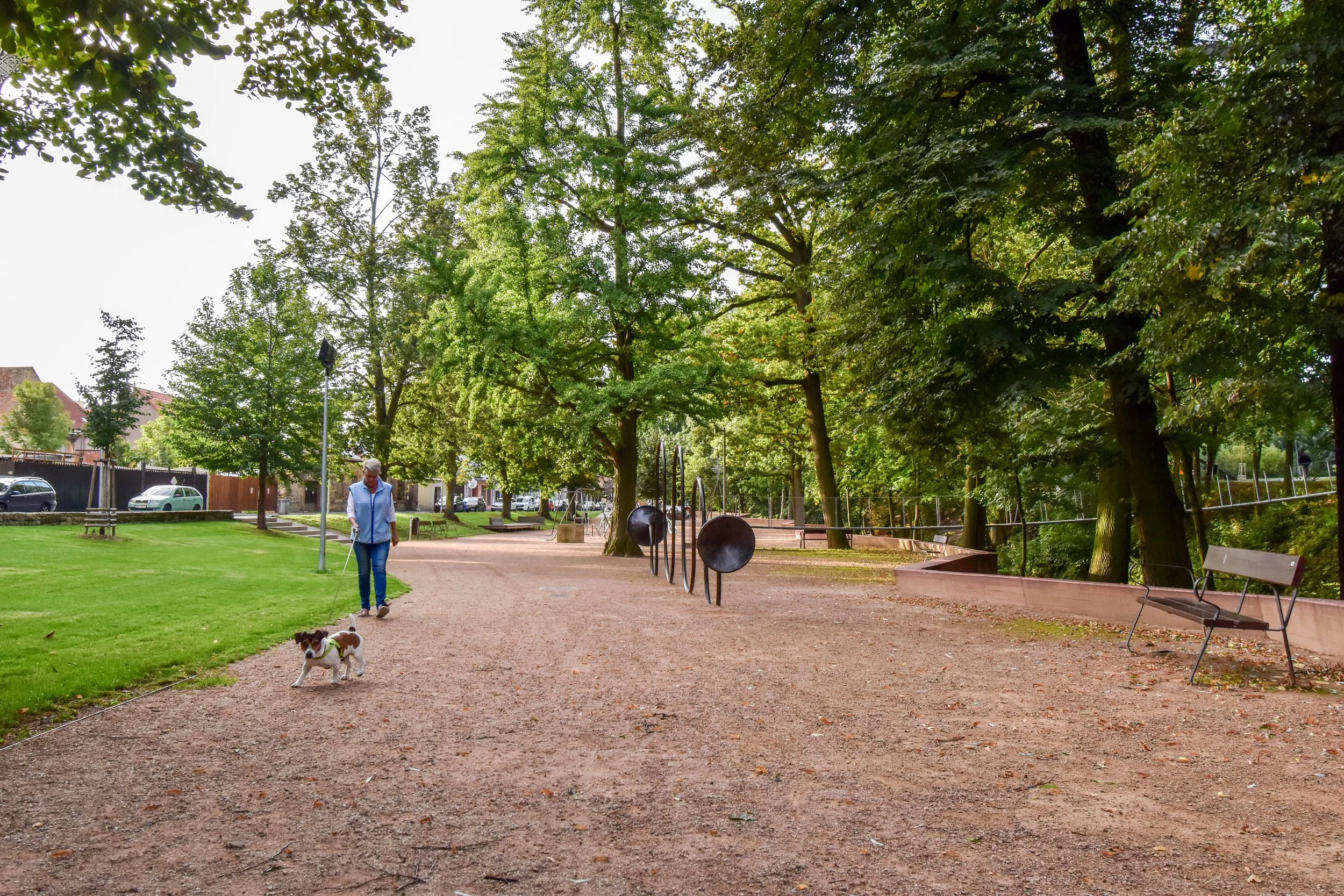 Městská promenáda pod stromy s příjemným kobercem z mlatu je zasvěcena odpočinku, posezení na různých typech lavic, setkávání a hře na neotřelém hřišti. Sochařsky ztvárněné prvky hřiště s hudebními motivy pro všechny věkové kategorie ztvárnili talentovaní sochaři Pavla Sceranková a Dušan Zahoranský.