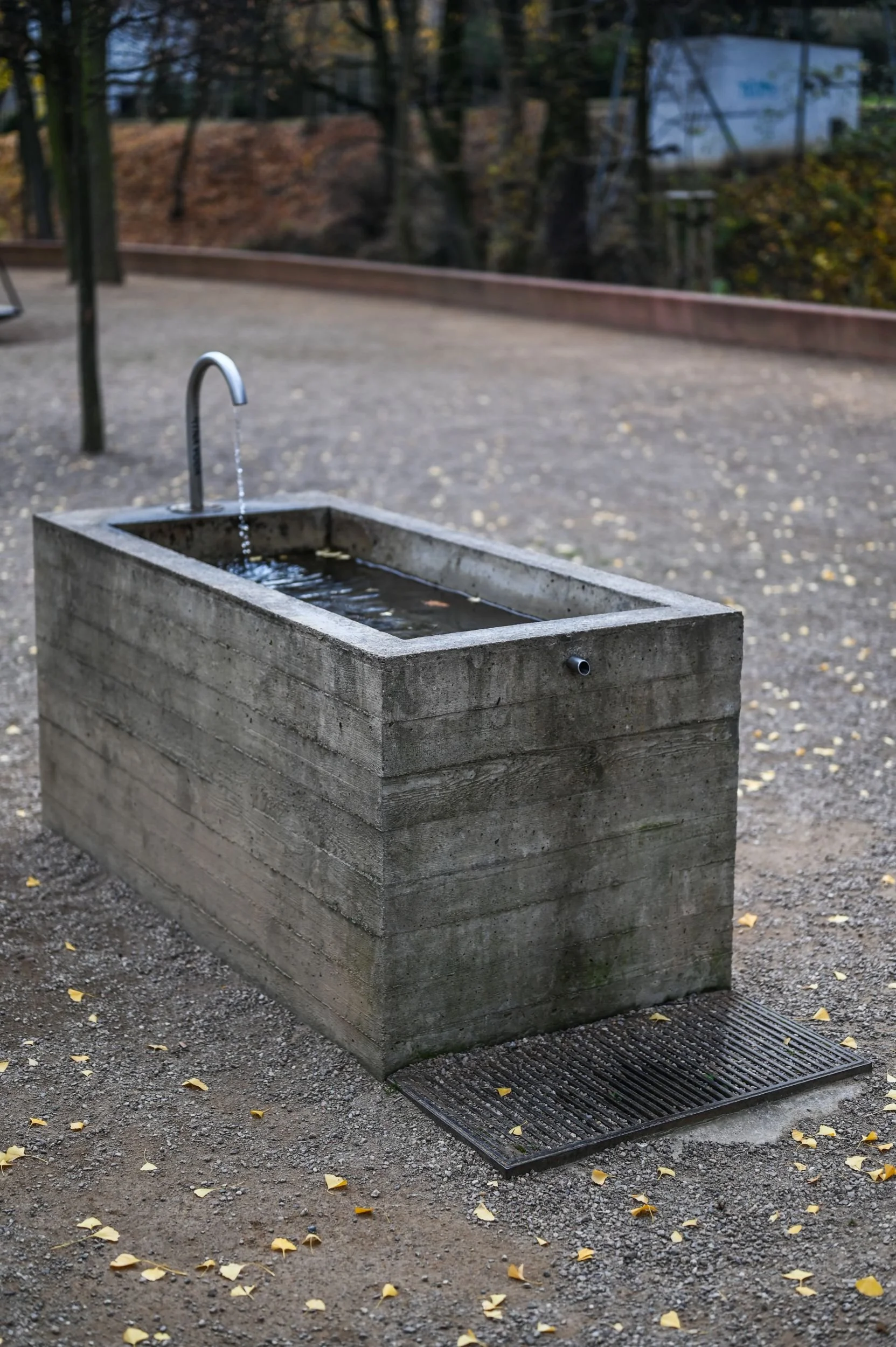 Nábřeží Loučné je lemováno nízkou zídkou z probarveného betonu, jež vytváří hranici mezi městem a přírodními břehy řeky. Barevná kontura ve formě zdi slouží jako vymezení hřiště a prostorů promenády, jako sezení, další herní prvek, ale i protipovodňová stěna nábřeží.