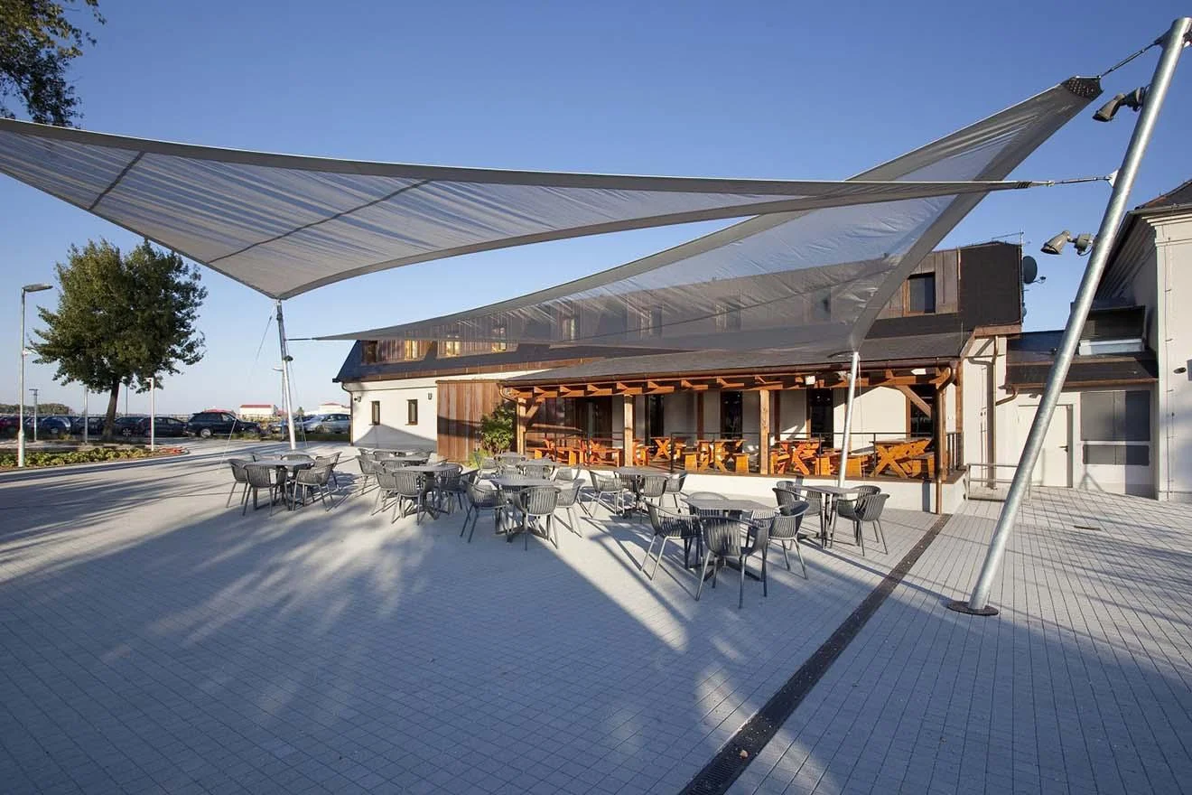 Vzhledem k rekreační a společenské funkci objektu bylo zadáním vybudování vodní plochy, která by měla výrazně oživit celý okolní areál s přilehlým tenisovým kurtem, volejbalovým hřištěm, a venkovním sezením restaurace.