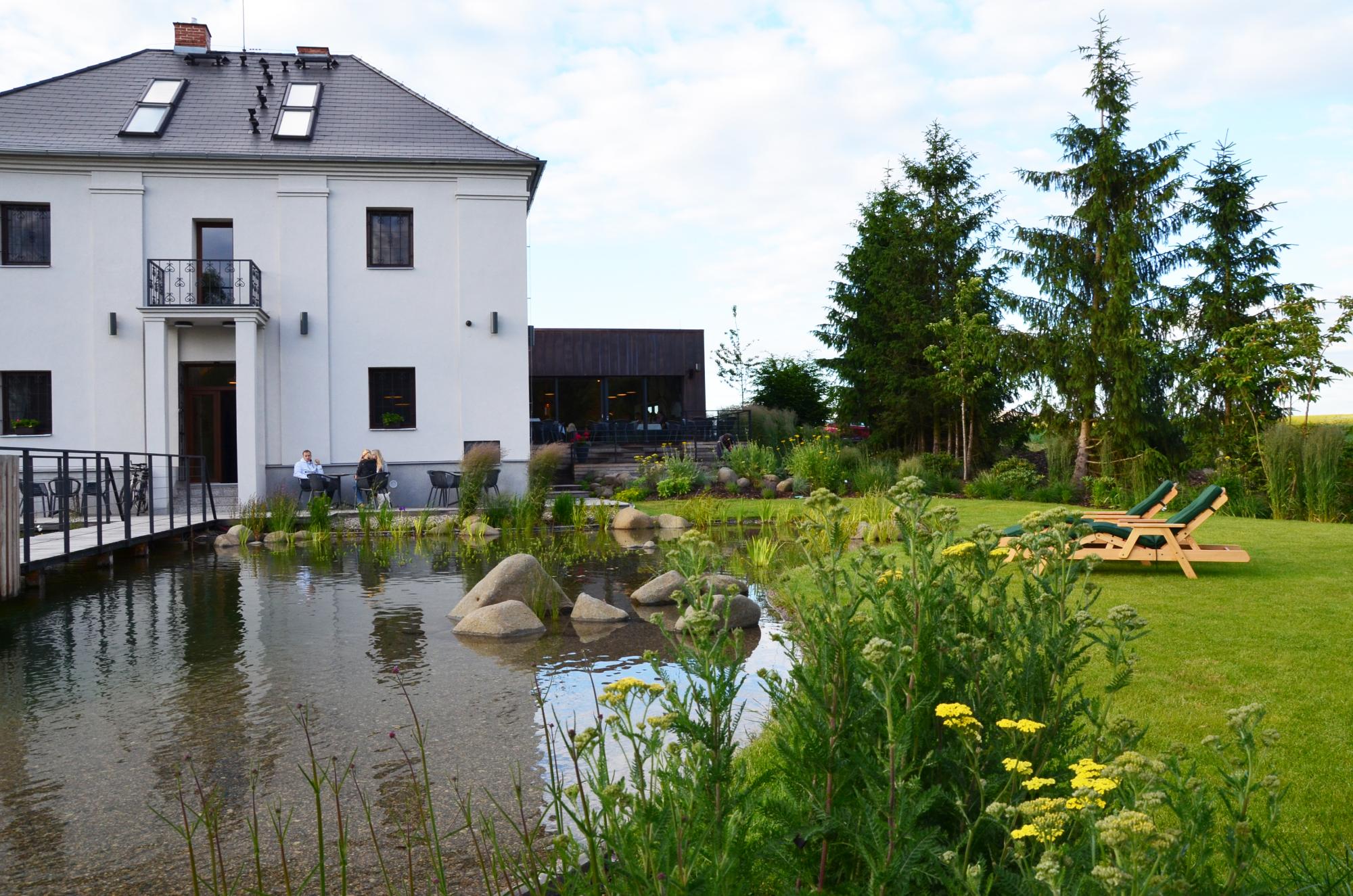 Privátnější zahradní část hostí vodní plochu a relaxační trávník, který je k dispozici jak hostům penzionu tak i krátkodobým návštěvníkům, kteří se zde zastaví v rámci výletu na místní pivo.