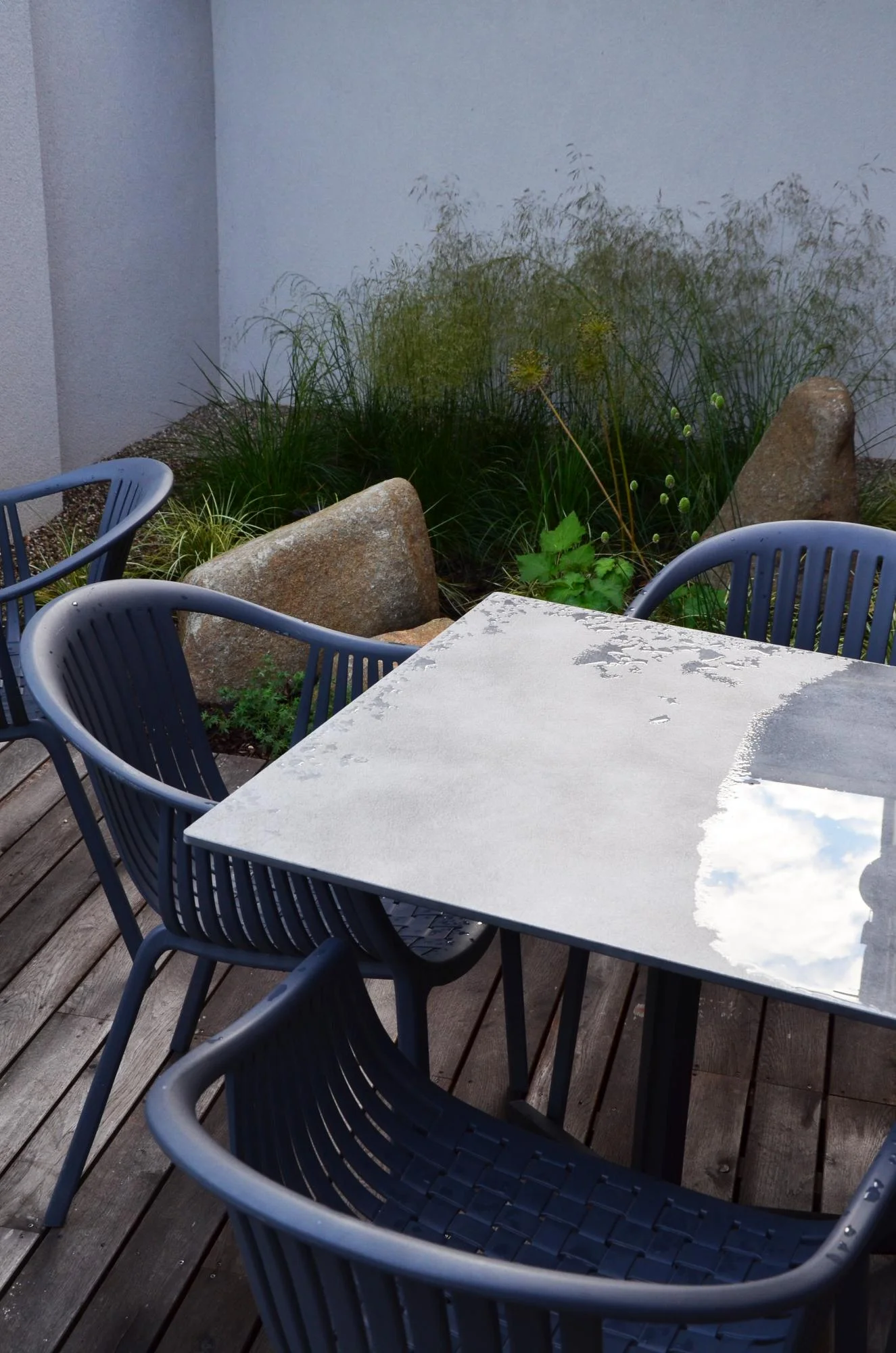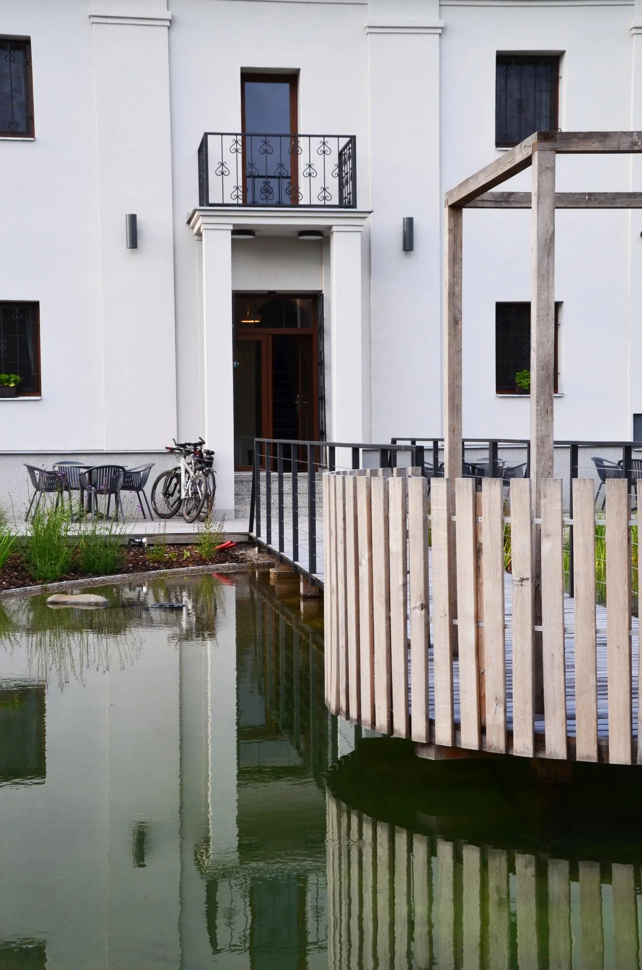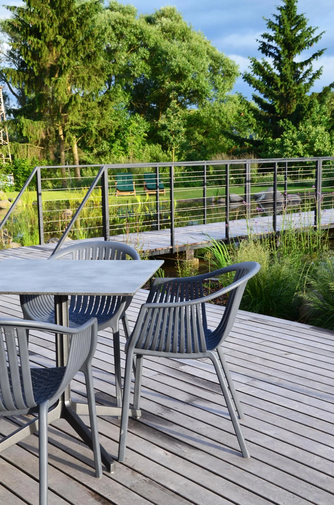 Pro nově přistavěnou část byla vytvořena menší vyvýšená venkovní zahrádka s dřevěnou palubou, ke které přiléhá samostatné „rybí" jezírko. Z paluby je jako z kapitánského můstku krásný výhled na vodu a okolí.Pro nově přistavěnou část byla vytvořena menší vyvýšená venkovní zahrádka s dřevěnou palubou, ke které přiléhá samostatné „rybí" jezírko a ze které je jako z kapitánského můstku krásný výhled na vodu a okolí.