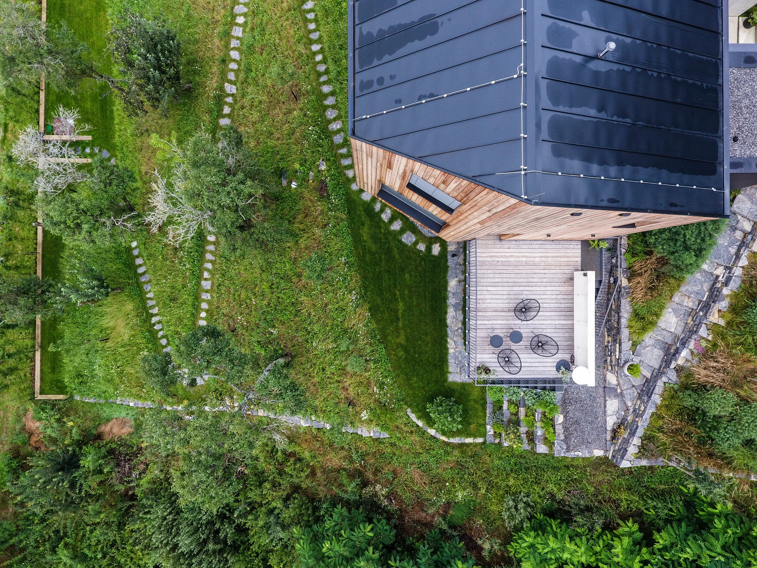 Zahradu jsme ‘sochali’ in situ - v tak prudkém svahu a složité topografii je to pravé trasování cest a výběr míst pro pobyt cítit mnohem lépe přímo na místě než nad papírem v teple atelieru.